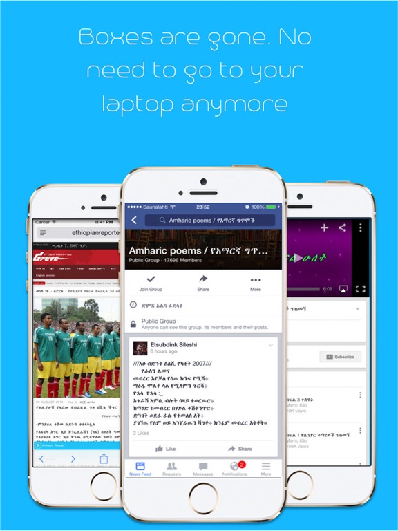 Ever followed a link only to find out it is just boxes? Are you dying to know what your friends commented in Amharic on Facebook? Or did you get a mail or a message that you can't read because it is all boxes? Amharic reader is an easy to use app that enables you to read Amharic letters on your iPhone and iPad. It also includes a Safari extension that lets you read Amharic letters on the web in Safari. It translates all the boxes to Amharic with a single tap. Install it now and you'll never have to go to your laptop to check what those 4 boxes mean.