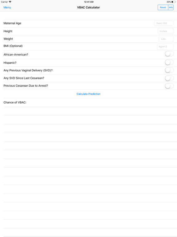 A collections of OB/GYN specific calculators all in one place. Easy and quick to use. Includes information about the tests and how to interpret results.