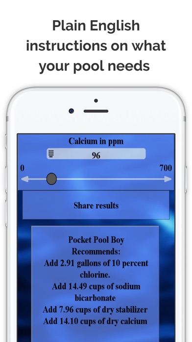 Pocket Pool Boy is a pool calculator in a class of its own! Take the guess work out of maintaining your pool. Pocket Pool Boy with regular use will attempt to learn your pools exact chlorine demand and over time adjust chlorine use. Some users see a drop in chemical usage of up to 30 percent! Pool chemical maintenance has never been this easy.