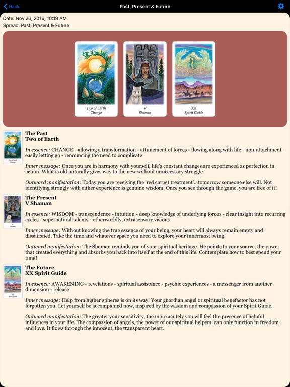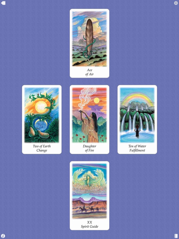The deck is structured more like Thoth than RWS. Diverse scenes of tribal life comprise the Majors and the royalty. Card titles of the Majors have been recognizably renamed. The four suits are Fire, Water, Earth and Air. The pips show symbolic objects of the four elements, and most have a keyword.