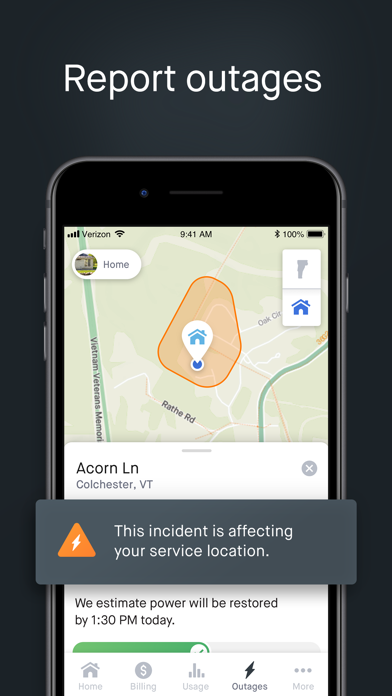 The Green Mountain Power app gives our customers all the tools and information needed to manage their account. Take care of essential tasks like making a payment or reporting an outage in just a few taps. View your current balance, outages affecting you, usage, generation, and more.