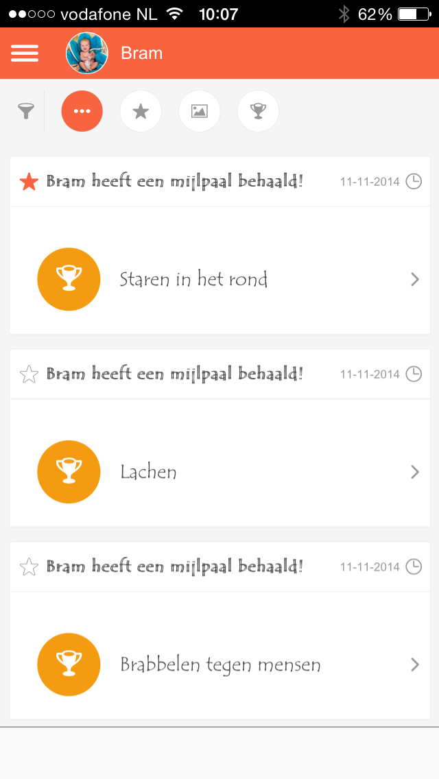 Met Snipit deel je interessante mijlpalen in het leven van jouw kleintje gemakkelijk met familie en vrienden, zonder je zorgen te hoeven maken over privacy! Je plaatst leuke nieuwe weetjes van je kind op zijn of haar eigen tijdlijn. Deze tijdlijn is alleen beschikbaar voor volgers die jij als ouder uitnodigt. Zodoende heb je een verzamelplek voor het volgen van de groei van jouw kleintje van geboorte tot en met de basisschool periode. Probeer het uit, het is gratis!