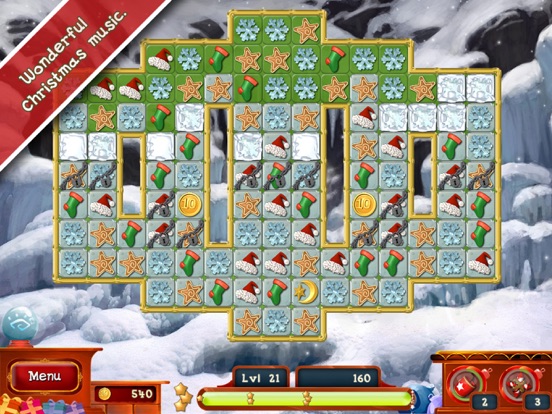 Play through cool Match 3 levels, collect Santa’s coins and prepare your house for Christmas with beautiful ornaments and decorations!