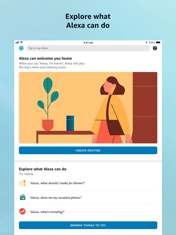 Use the Amazon Alexa App to set up your Alexa-enabled devices, listen to music, create shopping lists, get news updates, and much more. When you enable Alexa hands-free you can talk to Alexa by simply saying "Alexa" when the app is on your screen. The more you use Alexa, the more she adapts to your voice, vocabulary, and personal preferences.