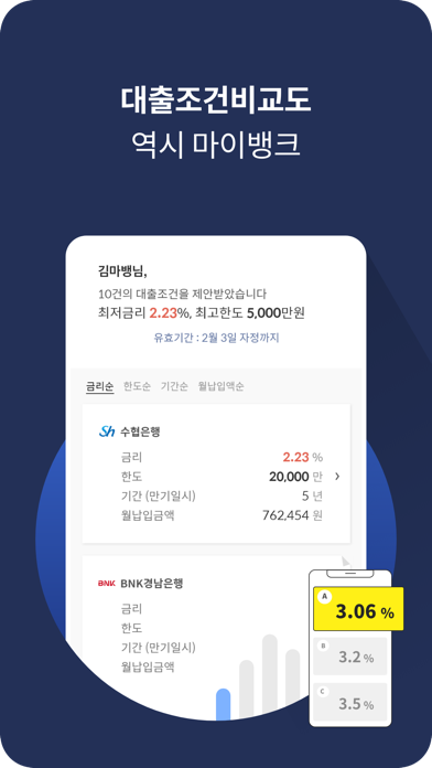 • 실제 이용가능한 금융기관별 대출조건을 정확히 비교