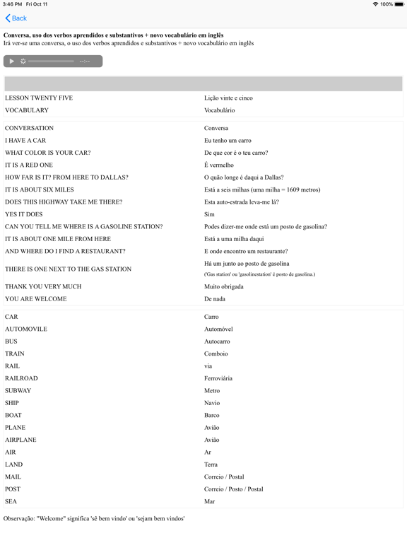 Este novo aplicativo contém 55 lições de Inglês, com áudio MP3, texto e pronúncia em sentido figurado, eu quero dizer que você tem tudo que você precisa para aprender o idioma Inglês,