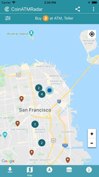 - Sharing possibility of every bitcoin ATM location and iOS app