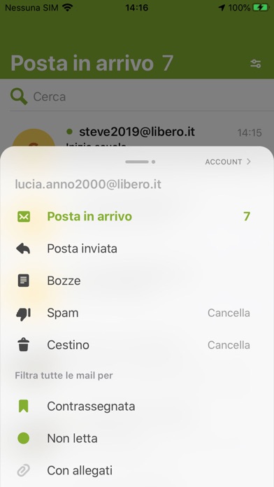 Con Libero Mail gestisci da un'unica applicazione tutte le tue caselle di posta, di qualsiasi provider, in modo semplice e ordinato. Libero, Virgilio, Tiscali, Yahoo, Gmail, Hotmail, MSN, Outlook, Fastmail: cosa c'è di meglio di una sola app per tutti i tuoi account? E passare da uno all'altro è questione di un attimo!