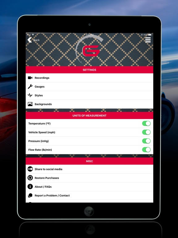 With multiple gauge designs, you can customize the look and feel of the information displayed within the app. Turn’s your smart phone into a digital dashboard. Choose from Analog or Digital gauge with either a portrait or landscape display mode to match your style!