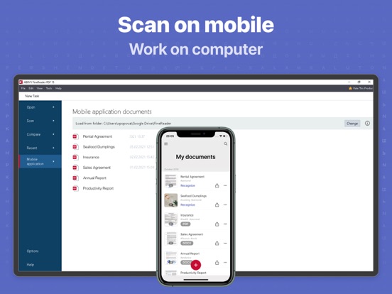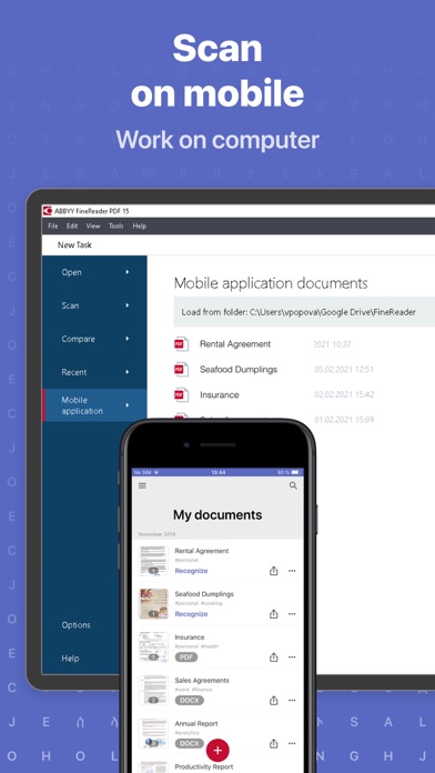 ABBYY FineReader PDF Pro - the first smart AI-powered scanner that turns your mobile device into an all-purpose tool to quickly capture docs and books, create electronic copies in PDF and JPEG and extract texts from scans for further editing and sharing.