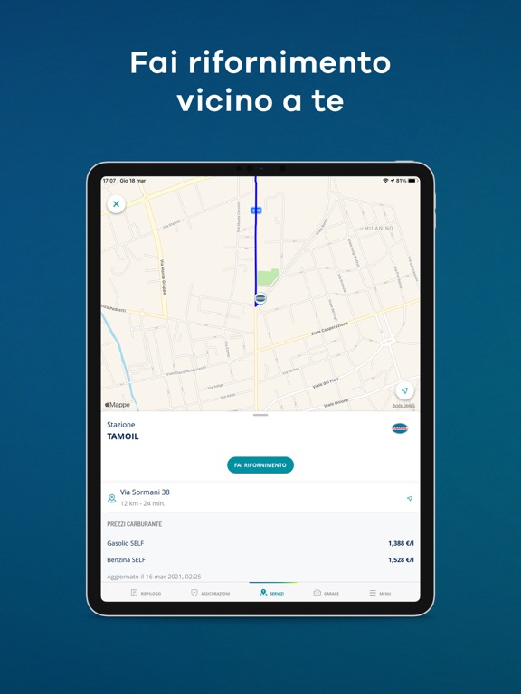 • Con il servizio “Carburante” cerchi la stazione convenzionata più vicina a te