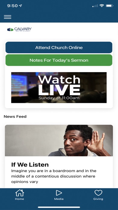 The Calvary Baptist Church App is designed to keep the members of the church connected with one another and activities of the church.