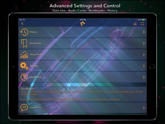 Tunr's visuals are the product of over a decade of development achievement at SoundSpectrum, and are also the reason Tunr is available at no cost. Your support in purchasing visuals helps keep Tunr an amazing and ad-free experience.