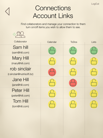 13. Our Sharing section which allows you to add people and select which part of your Calendar, ToDos, and lists you would like your connected people to view.