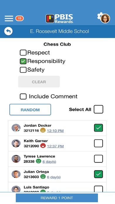Teachers and Administrators give students points by scanning a bar code or QR code assigned to the student. The process is fast and simple. The bar code can be on a nametag, desk sticker, class roster sheet, or a student ID badge. Students can then redeem points for privileges and/or items using a similar process.