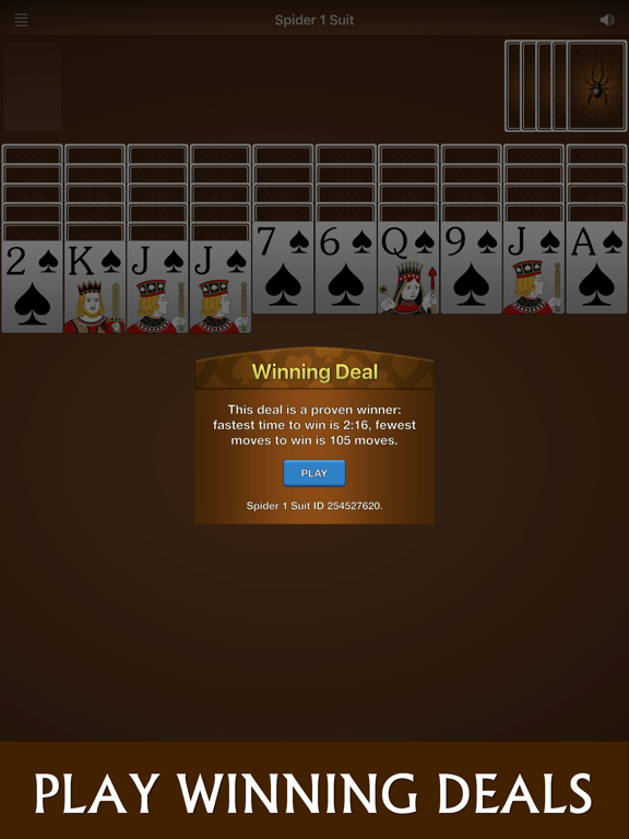 • Classic Spider (play 1, 2, 3 or 4 suits)