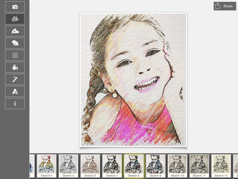 Apply several amazing sketch effects to your photo and share it with your friends on Facebook, Twitter, whatsapp, instagram..