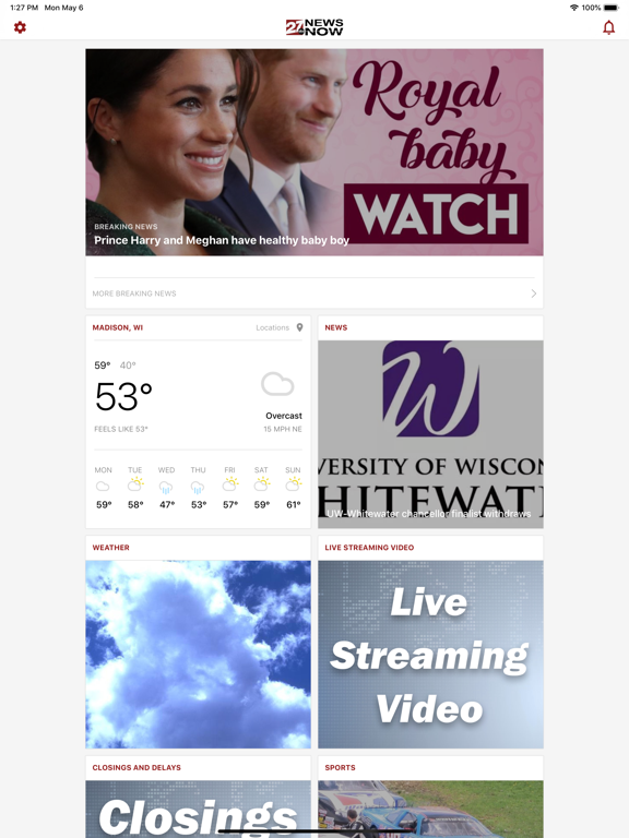 The 27 News Now app from WKOW has you covered on all things news, weather and sports in Madison and all of South Central Wisconsin. Find local and national news, 27 StormTrack Weather for your community, live streaming news, video, breaking news, Wisconsin sports coverage of the Badgers, Packers and Brewers plus local high school sports coverage.