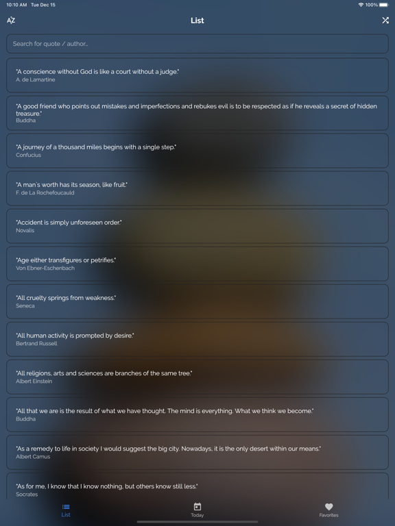 - LIST OF QUOTES: The quote of the day is not enough for you? Philosophy provides the ability to see the complete list of all the phrases available in the app, anywhere, anytime.