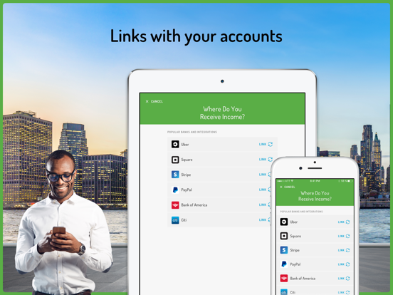Hurdlr connects with thousands of leading banks as well as Uber, FreshBooks, Square, Stripe and Paypal to import your income and expenses automatically for easy income tax calculations.