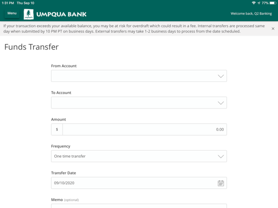 ¹Email and mobile payments require enrollment and must be made from an Umpqua Bank consumer checking account to a domestic bank account. Recipients have 14 days to enroll to receive money or the payment will be cancelled. Dollar and frequency limits apply.