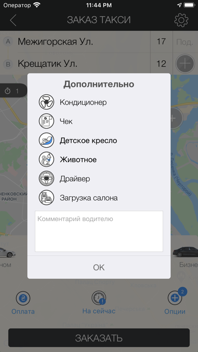 • Моментальный просчет стоимости поездки и услуг такси