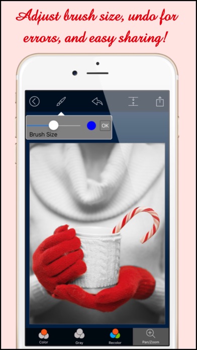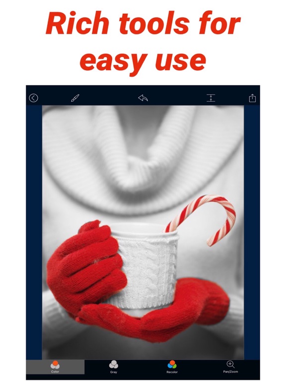 [+] Color/Gray: Apply original color or gray on any part of the photo.