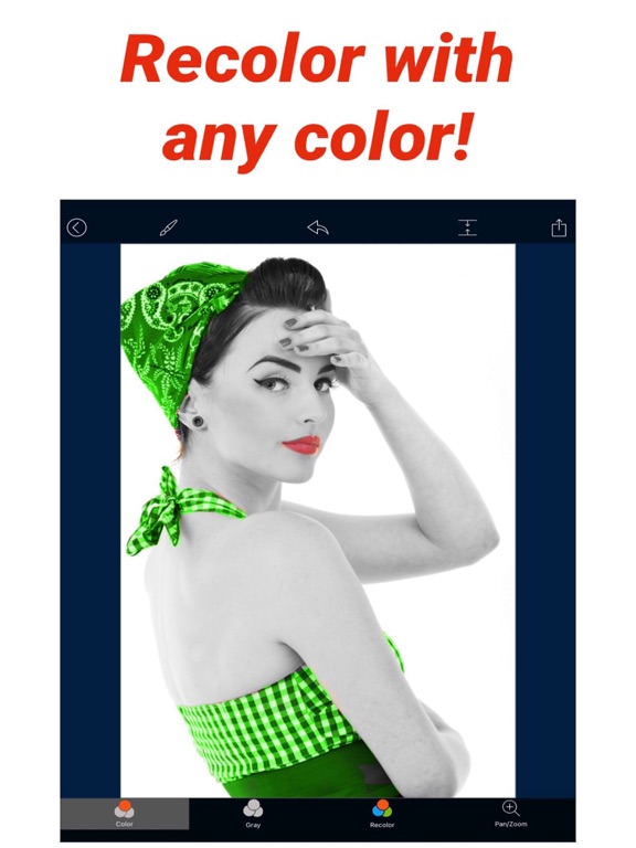 [+] Recolor : Use any color to apply anywhere on the photo.