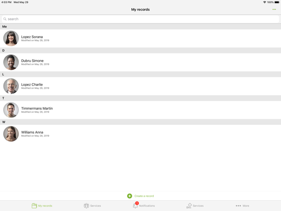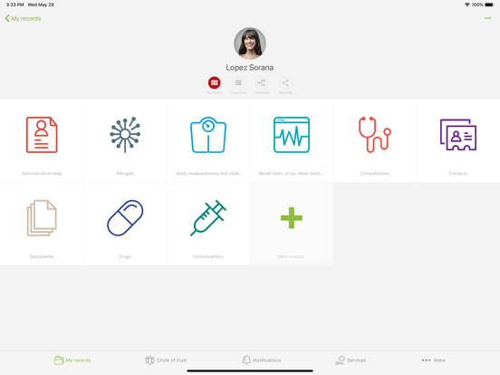 You can securely share part or all of your records with family members and other doctors. No data is stored in the cloud. Data is stored locally and exchanged directly, from person to person, no one other than you and the people you trust will have access to your data.