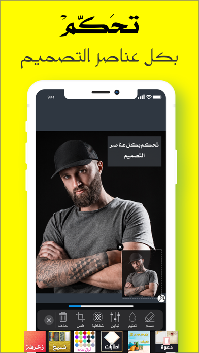 البرنامج حائز على افضل ترتيب بالمملكة العربية السعودية وعلى افضل المراكز على الآبستور في العديد من الدول العربية والعالمية. يوفر لك التطبيق اضافة عدد لا محدود من النصوص والتي يمكنك تعير خطها الى ما تشاء. يوفر البرنامج ١٧٠ خط بالعربي احترافي. يمكنك اداج تصاميمك وحفظها بمكتبة الصور او رفعها على سناب شات بشكل مباشر.
