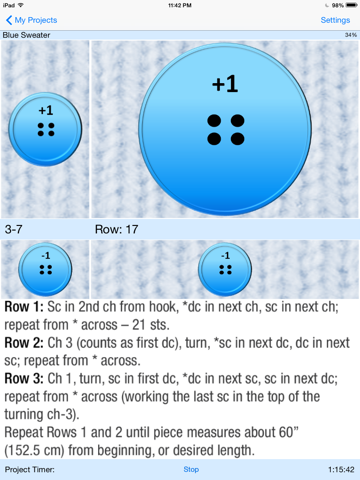 MULTIPLE PROJECT SUPPORT: No limit to the number of knitting or crochet projects that you can track. Each project has individualized settings.