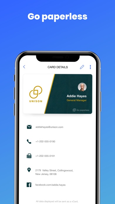 - Create and share your digital business card at a tap of a button.