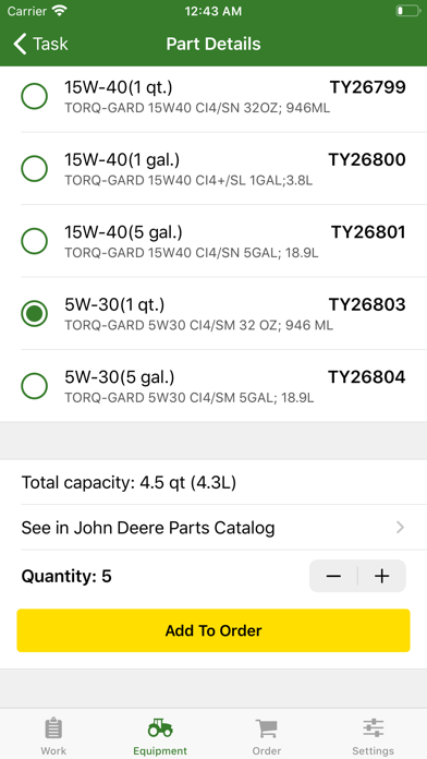 The TractorPlus app from John Deere includes exciting improvements whether you own a 1025R or 9620RX tractor. Quickly identify your equipment using the built-in barcode scanner and unlock a wealth of information and tools that help you use and maintain your equipment more efficiently. View detailed upcoming maintenance recommendations with quick access to instructions from your Operator's Manual or links to relevant tutorial videos. Get fluid capacities and parts information with options to easily purchase via an online shopping cart. Track your engine hours, record your maintenance history, and quickly link to parts diagrams when you need to identify a repair part. For Compact Utility Tractor customers there is also a new option to record and visualize work using your phone's built-in GPS and additional information when looking up diagnostic trouble codes. Browse a list of John Deere and Frontier implements compatible with your small tractor and discover great tutorial videos in the Tips Notebook.