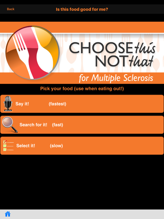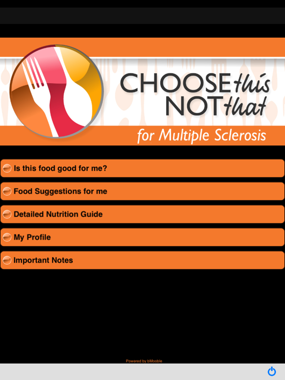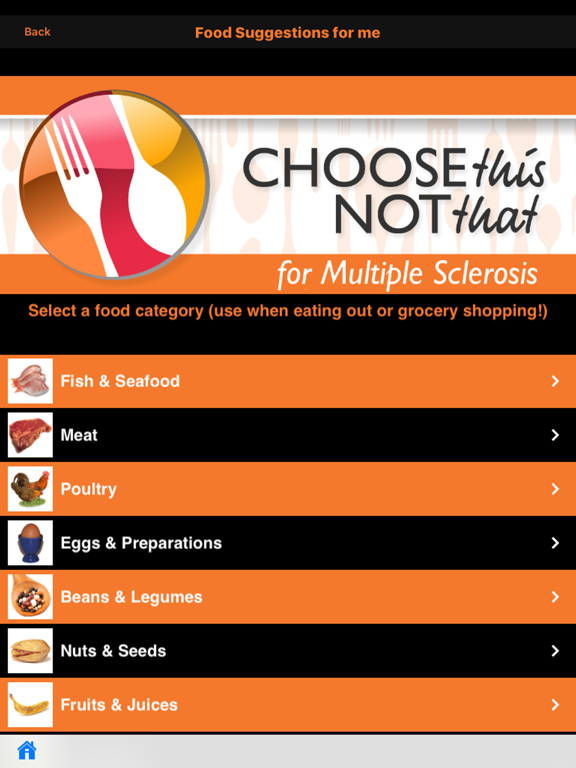 Choose This Not That for Multiple Sclerosis (MS). Inside this colorful app, you will find easy to follow suggestions on how to improve your health through nutrition and the food choices you make every day. This app provides comprehensive and actionable nutrition guidelines for how to prevent and manage Multiple Sclerosis and its complications. If you rather tackle health issues and risks through proper nutrition and lifestyle changes then this app is for you!