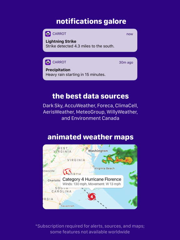- Notifications, including precipitation, weather alerts, and lightning strikes (where available)