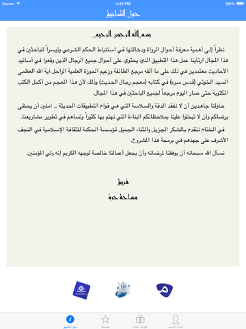 نظراً إلى أهمية معرفة أحوال الرواة ودخالتها في استنباط الحكم الشرعي وتيسراً للباحثين في هذا المجال ارتأينا عمل هذا التطبيق الذي يحتوي على أحوال جميع الرجال الذين وقعوا في أسانيد الأحاديث معتمدين في ذلك على ما ألفه مرجع الطائفة وزعيم الحوزة العلمية الراحل آية الله العظمى السيد الخوئي (قدس سره) في كتابه (معجم رجال الحديث) وذلك لأن هذا المعجم من أكمل الكتب المكتوبة حتى صار اليوم مرجعاً لجميع الباحثين في هذا المجال.