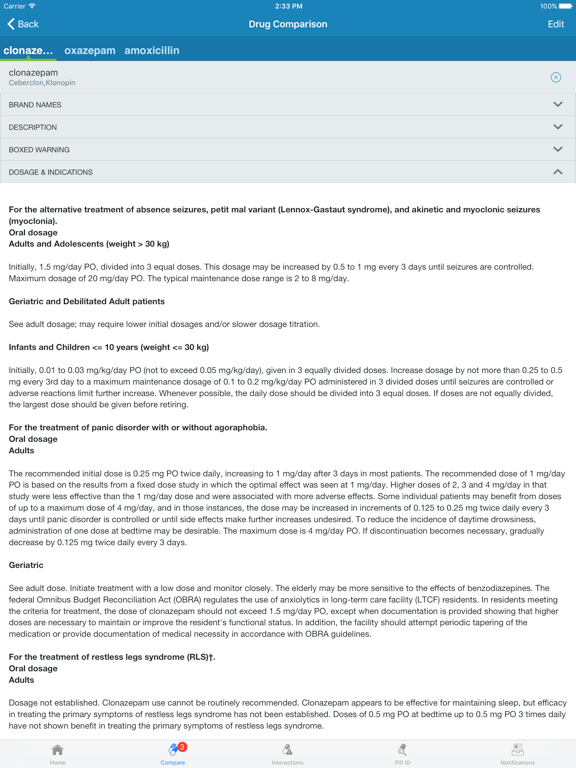 - Swipe left-right to compare key drug characteristics such as dosing, indications, and side effects
