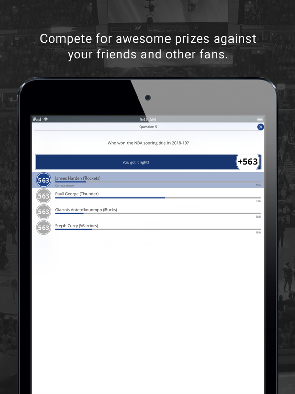 Earn points for each correct answer. Earn the most points for the game or for the season to win awesome prizes like tickets, sporting equipment, autographed collectibles, t-shirts and more. Check the prize board anytime during the game to see if you're in the hunt for a prize. Not on the prize board? You’ve still got a chance - for each question you answer, earn a ticket in the animated instant win prize drawings.