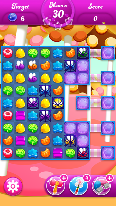 • Use Boosters like Gummy Hammers and Magic Wands to crush troublesome tiles and help pass levels for higher scores