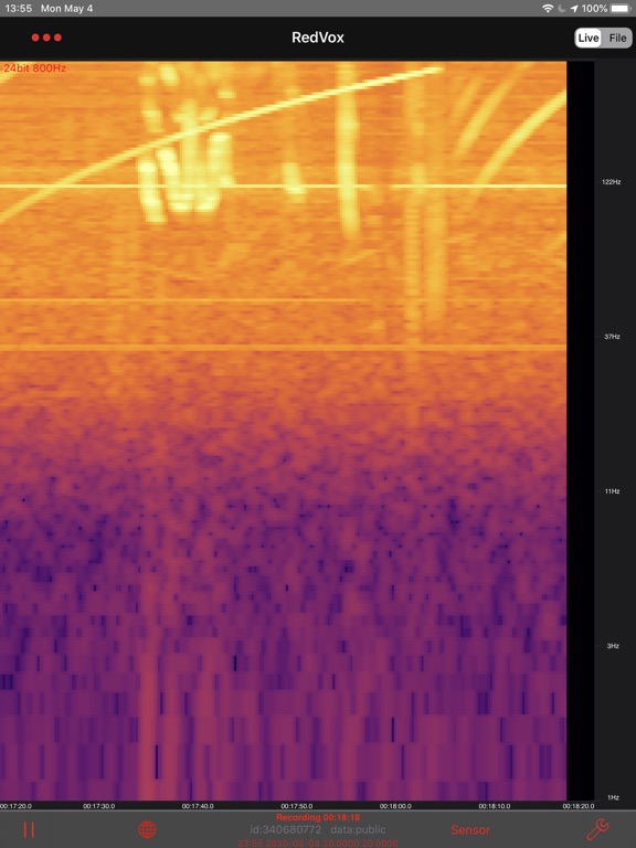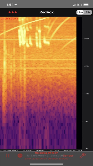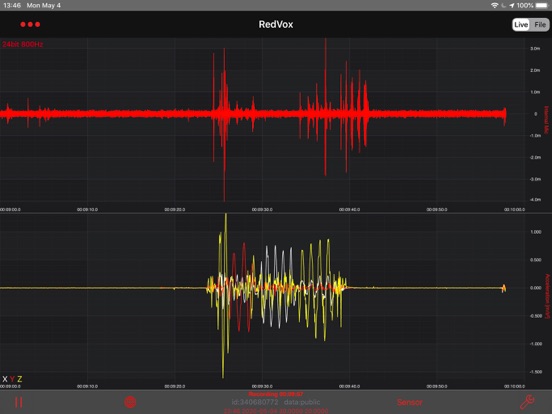 RedVox Recorder can record in the background to continuously monitor infrasound events and ambient noise. Although continued recording will consume more power, with the screen off it can run off the internal battery for many hours.