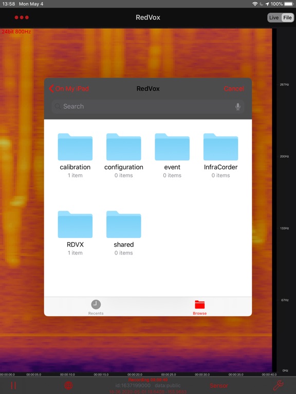 You have access to all the RDVX files recorded in your device with the Files app. Please refer to the API900 Python SDK at https://pypi.org/project/redvox/ for instructions on how to open the files.