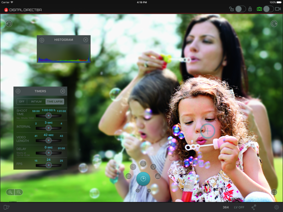 The "Digital Director" App is an interface between Canon and Nikon digital cameras (DSLRs) and an iPad.