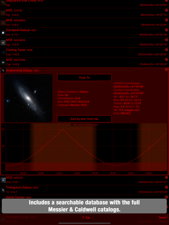 - Get help finding the DSO Database objects with your non-goto telescope with the Push-To function.