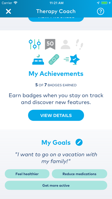 • You will be able to track your therapy, sleep, activity and pain levels. You will be able see up to two years of data at intervals from 1 day to 3 months.