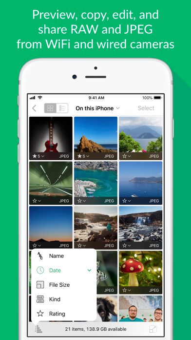 • View, share and export your photos at full resolution (including RAW files***) right from your iOS device.