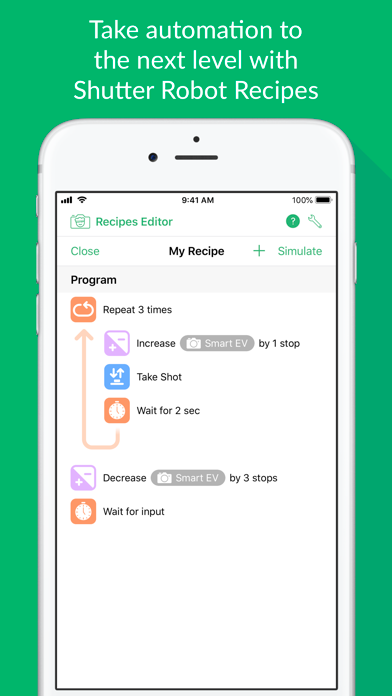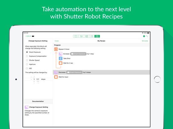 • Take timelapses, perform exposure bracketing and more with the built-in Shutter Robot automation tool (WiFi only).