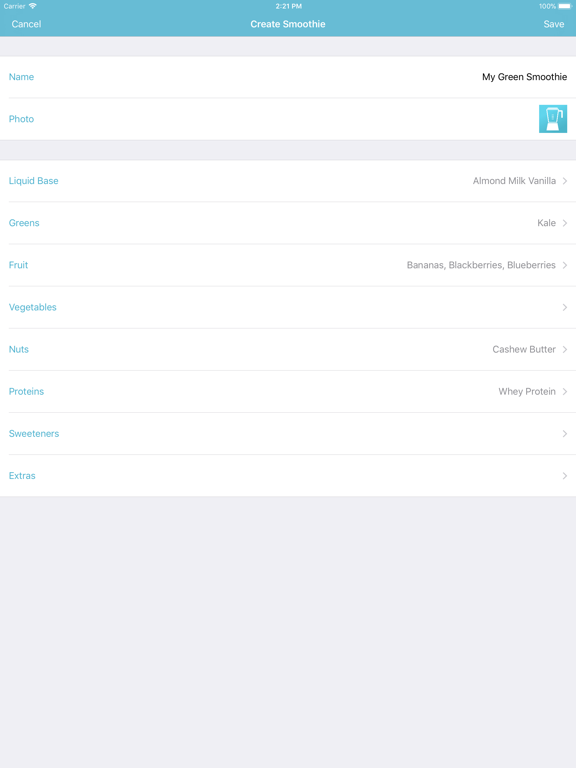 Looking for that perfect smoothie recipe, designed just for you? Well, look no further. Simply Smoothies is the ideal app for you. Simply Smoothies will allow you to be the chef and help you create custom healthy smoothie recipes. You select the liquid base, the types of fruit and/or veggies, your protein source and any fun add-ins, and we do the work. We choose the perfect amount of each ingredient and even calculate the nutritional information for your creation and voila, you have the perfect smoothie!