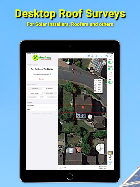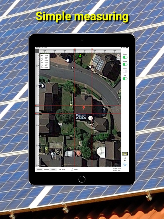 Use Apple or Google maps and satellite imagery to easily locate and measure a potential roof for suitability of a solar-PV or thermal installation.