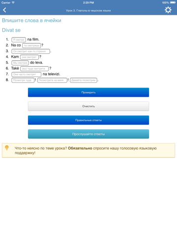 В наших упражнениях нужно самому сделать перевод всего предложения. Всегда можно свериться с ответами и в ответах найти перевод незнакомых слов. Все ответы озвучены.