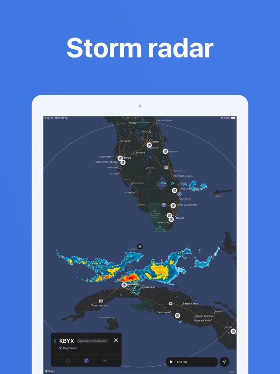 Get the heads up on bad weather. RainViewer lets you track a storm's path on an easy-to-read weather map from how it's moved in the past 48 hrs. to its position now to where it's predicted to be in the next 90 mins.